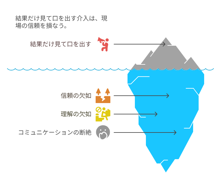 成果が思わしくないときだけ現場に降りてきて、数字や責任の話をする──このような介入は、現場の信頼を大きく損ねる。